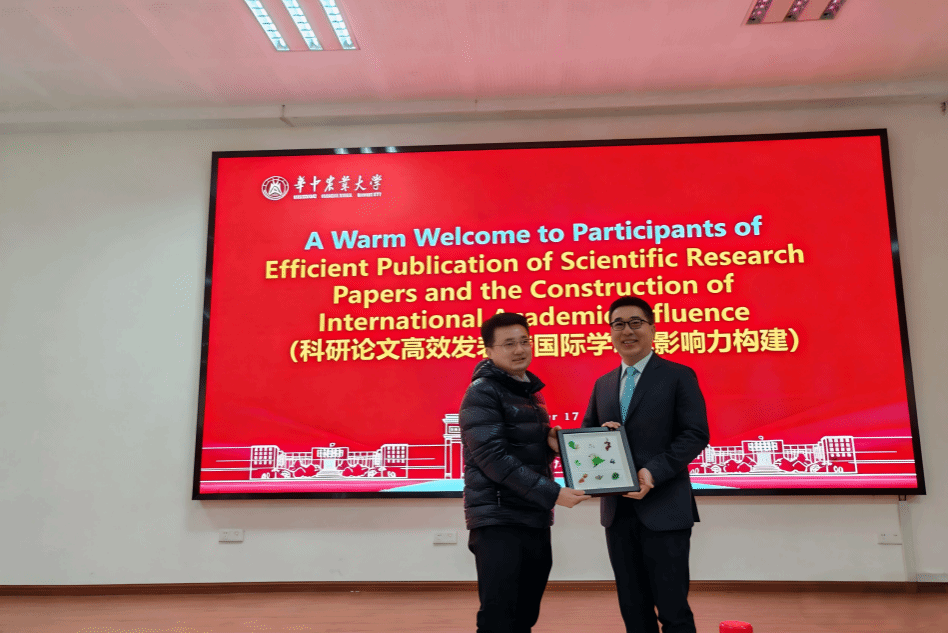 最后,为感谢Yong Sik Ok教授的倾囊相授,易宝军老师代表学院向他赠送了具有华中农业大学特色的九宫格植物标本。